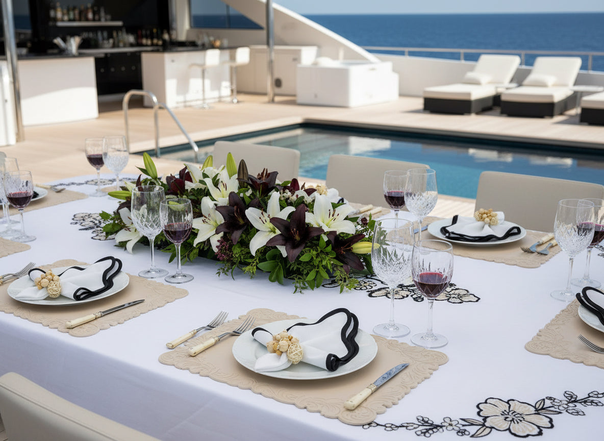 Elevate your dining experience with our set of four Cream Embossed Faux Leather Rectangle Placemats. These exquisitely crafted placemats bring a touch of sophisticated luxury to any table setting. Their durable material ensures longevity, making them ideal for even the busiest tables. Plus, they're wonderfully easy to care for and maintain. Add a touch of timeless elegance to your table with this perfect set.