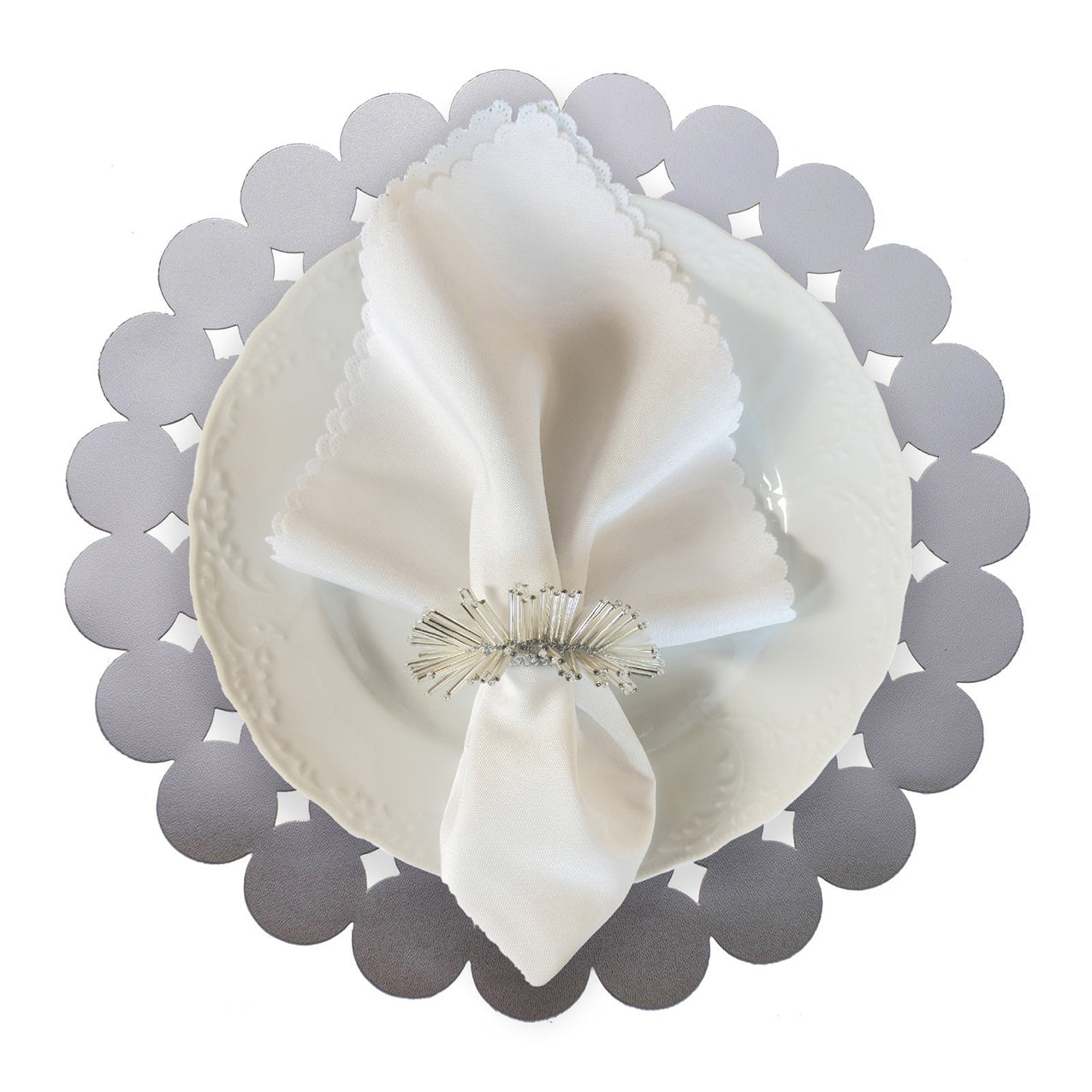 The Fleur Silver placemat adds a touch of Glamour to every dining decor. Both as an ornament, but also as a countertop protection. The openwork pattern will harmonize beautifully with the interior in any table style. Easy to clean - just wipe with a damp cloth or wash in water and soap. Water and stain repellent.