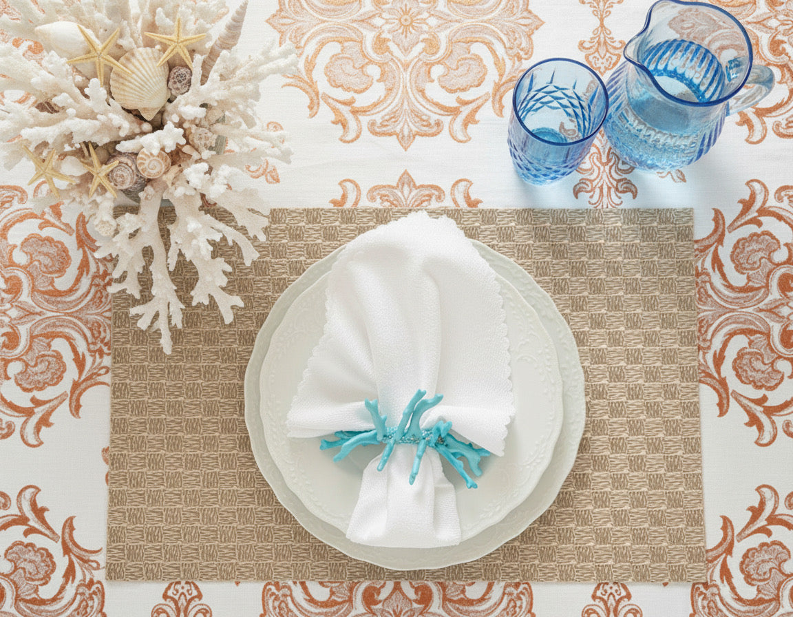 Always store our placemats flat and not folded. If creasing occurs, lay flat for a few days or use a garment steamer on the lowest setting.