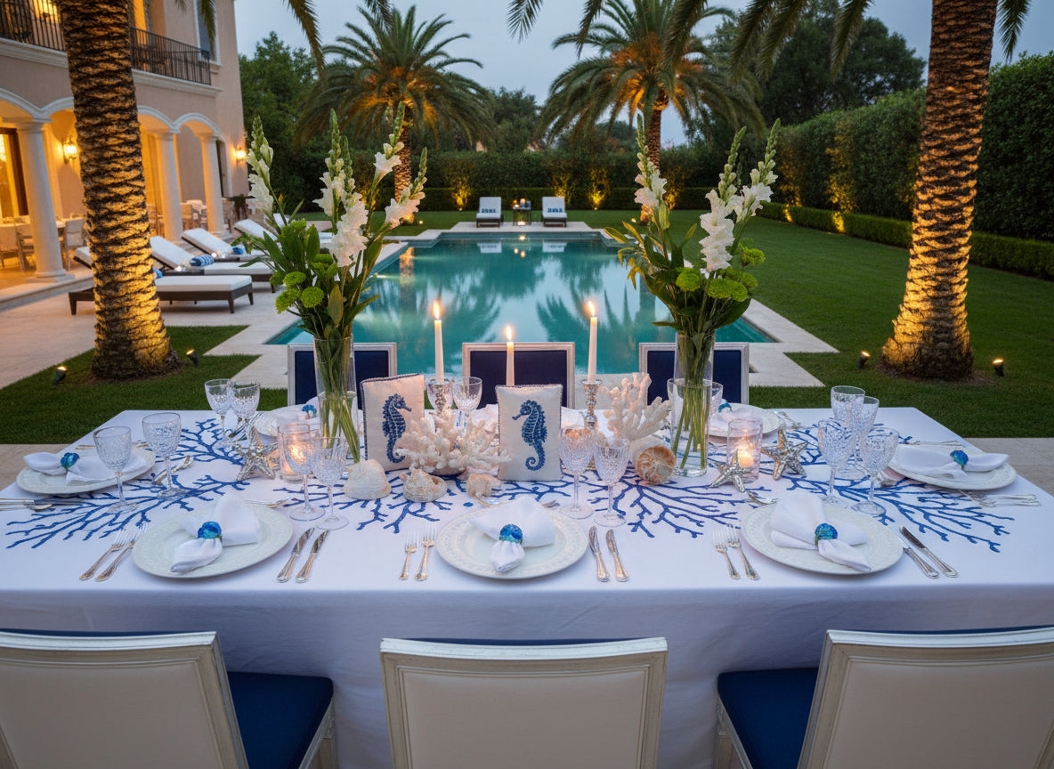 The Seychelles Napkin Rings bring the rugged beauty of the Seychelles to your table with this delightful set of four napkin rings. Crafted to resemble pebbelled stone formations, each ring features a striking blue hue reminiscent of the Indian Ocean, paired with a charming green glass beaded band. Ideal for elevating yacht entertaining, coastal-themed gatherings, or luxury villa dinners, these whimsical pieces add a touch of island-inspired sophistication to any occasion.