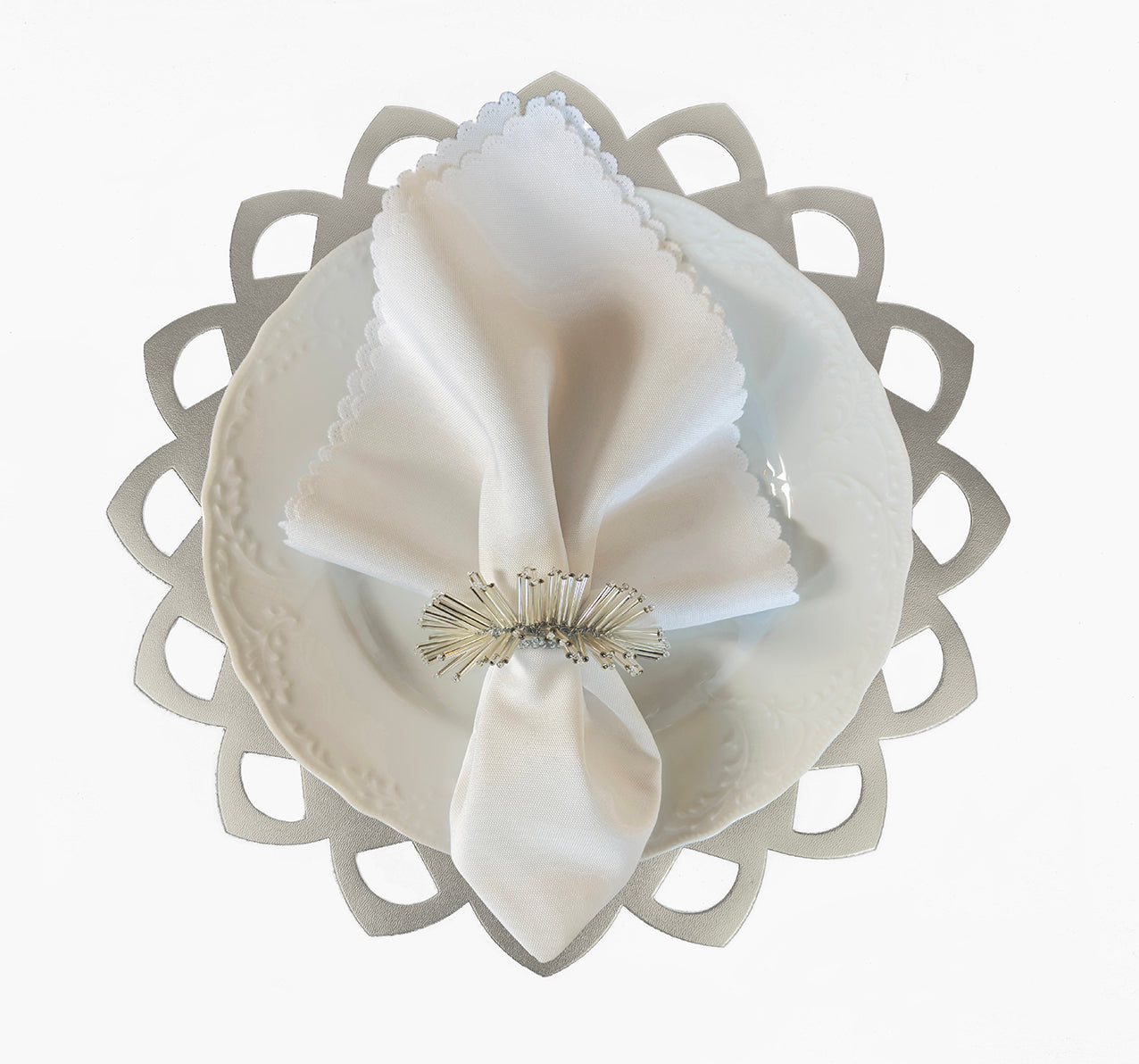 The Star Silver placemat adds a touch of Glamour to every dining decor. Both as an ornament, but also as a countertop protection. The openwork pattern will harmonize beautifully with the interior in any table style. Easy to clean - just wipe with a damp cloth or wash in water and soap. Water and stain repellent.