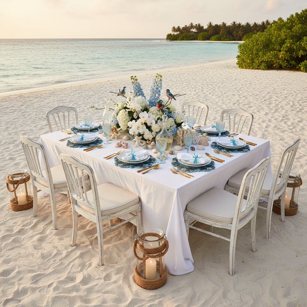 The Glamorous Surf beaded placemat is a true masterpiece. Creative, and sparkling in the light! Adds a true touch of Glamour to every dining decor. It glistens and sparkles with a surf theme. Truly impress your guests onboard a yacht or at a coastal theme and light up the room. Felt backing to add a soft touch to any table, and added non scratch properties. Add the matching napkin ring to finish the look.