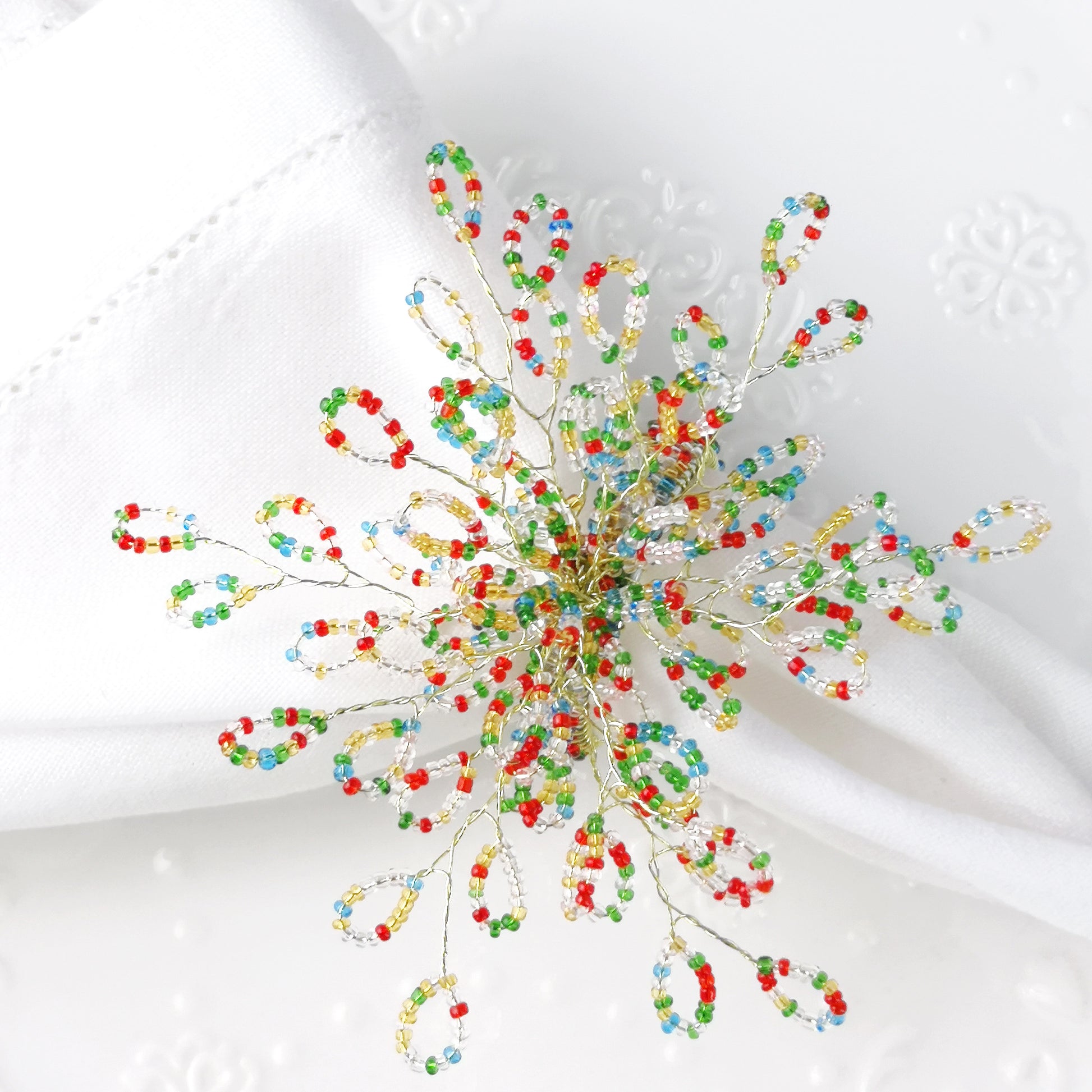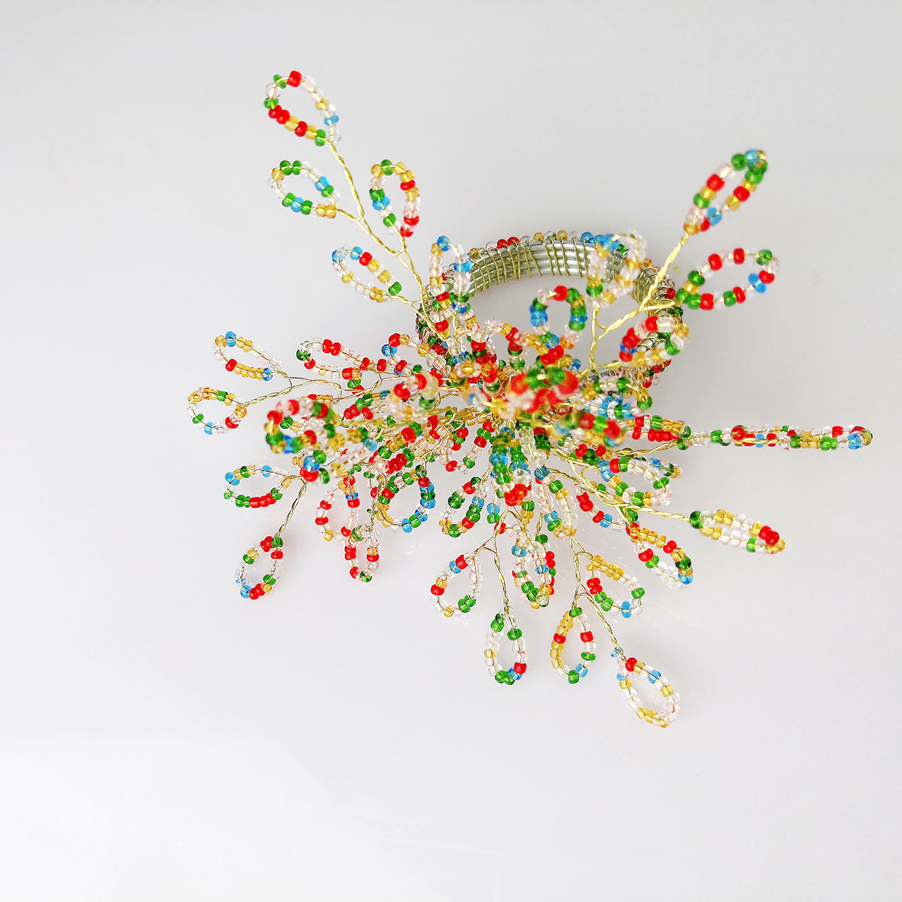 The Bali Napkin Ring is a magic enchanting set of four Bali Napkin Rings, where intricate beadwork meets delicate silver florals in a burst of colour. Each ring is a miniature work of art, handcrafted with multicoloured beads woven into graceful flower style that will dance around your table. Perfect for casual dinners or glamorous celebrations alike, these playful yet sophisticated pieces add personality and panache to any occasion. Combine with our placemat collection to complete your Tablescape with flair.