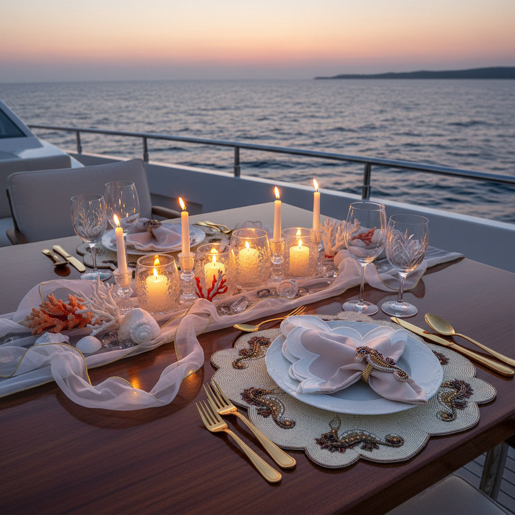 Dive into dinnertime magic with these delightful seahorse napkin rings! Each handcrafted piece showcases intricate beadwork that whisks your guests away to a shimmering underwater realm. Perfect for seaside suppers or anyone who adores ocean-inspired elegance, this set of four adds a splash of whimsy to your table setting. Pair them with our matching Seahorse beaded placemat for a complete oceanic escape.