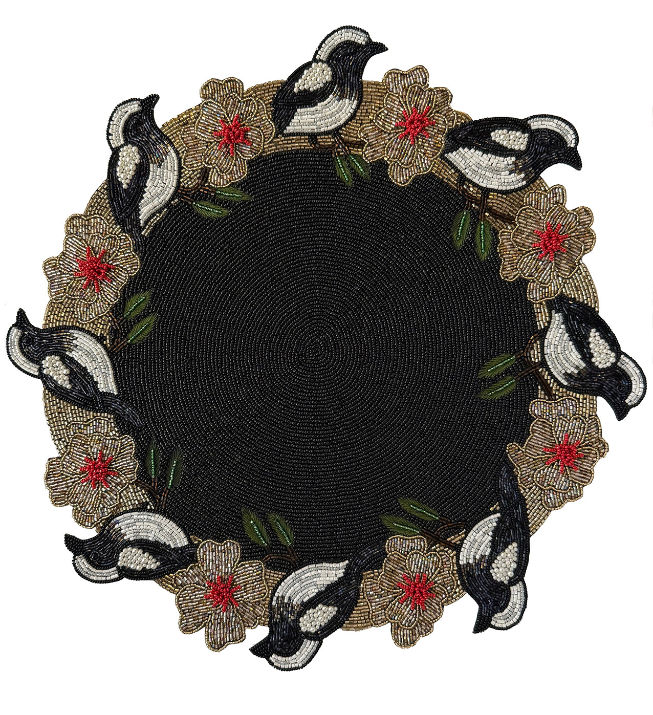 The Tweety Pie beaded and embroidery placemat features birds and flowers. Truly stunning pieces for any luxury table setting. Felt backing to add a soft touch to any table, and added non scratch properties. We have a matching napkin ring, to complete the look.